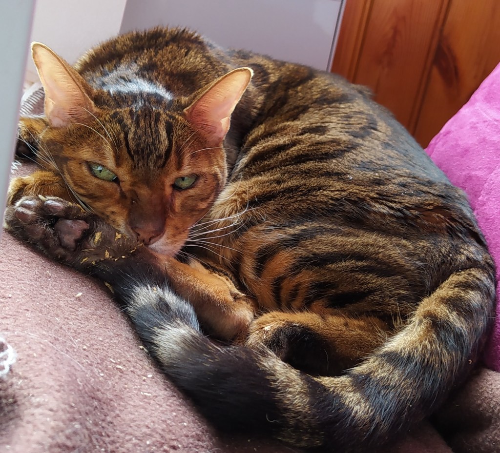 Pour Hélium, et bien comme tu peux le voir sur la photo, il a l’air d’aller bien. Mais j’ai un doute. Je n’aime pas les soins que je dois lui prodiguer deux fois par jour. En ce moment il a droit à 4 unités d’insuline, 5 gouttes d’huile de chanvre (c’est son anti douleur) et en plus de ça, je dois lui donner un produit contre la diarrhée. Il le déteste.